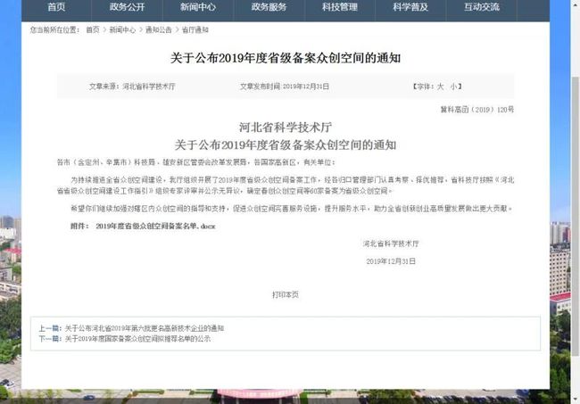 5月28日,河北省科学技术厅发布《关于公布2019年度省级备案众创空间的通知》,清控科创旗下雄安绿地双创中心成功获批河北省级众创空间。