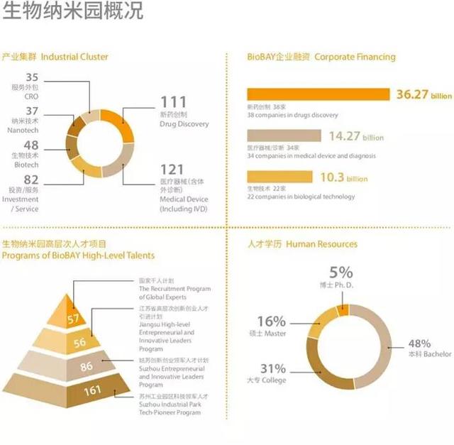 苏州生物纳米园作为园区生物医药相关的重要基地,2007年6月便已开园投入使用,相关企业入驻已经达到400多家,形成了以博瑞、信达等企业为代表的新药创新,以科贝、新海为代表的医疗器械,以金唯智、美诺为代表的生物技术的产业集群,另外冷泉港亚洲会议中心等项目,更是使得生物纳米园成为全球生命科学领域的产业和学术交流中心。2016年,整个园区的生物制药实现产值470亿元,同比增长了24%。