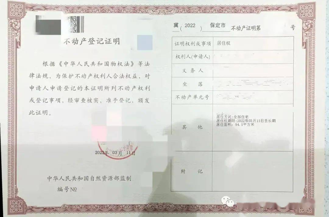 2022年3月11日,李先生拿到了保定市第一张居住权登记证明,这标志着《民法典》中新增用益物权——“居住权”登记在保定市正式落地实施。李先生激动地表示,这次申请的居住权证明拿在手里,喜在心,心中这一块石头总算落了地,今后的“安居梦”就高枕无忧啦。
