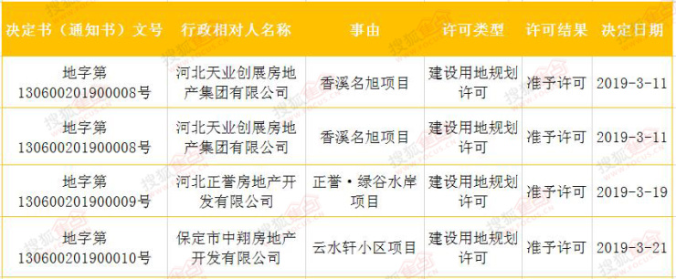 搜狐焦点网自保定市城乡规划管理局获悉,截止到3月31日,保定主城区共下发4个建设用地规划许可证,香溪名旭项目、正誉·绿谷水岸项目、云水轩小区项目获证。【详细信息 如下图】